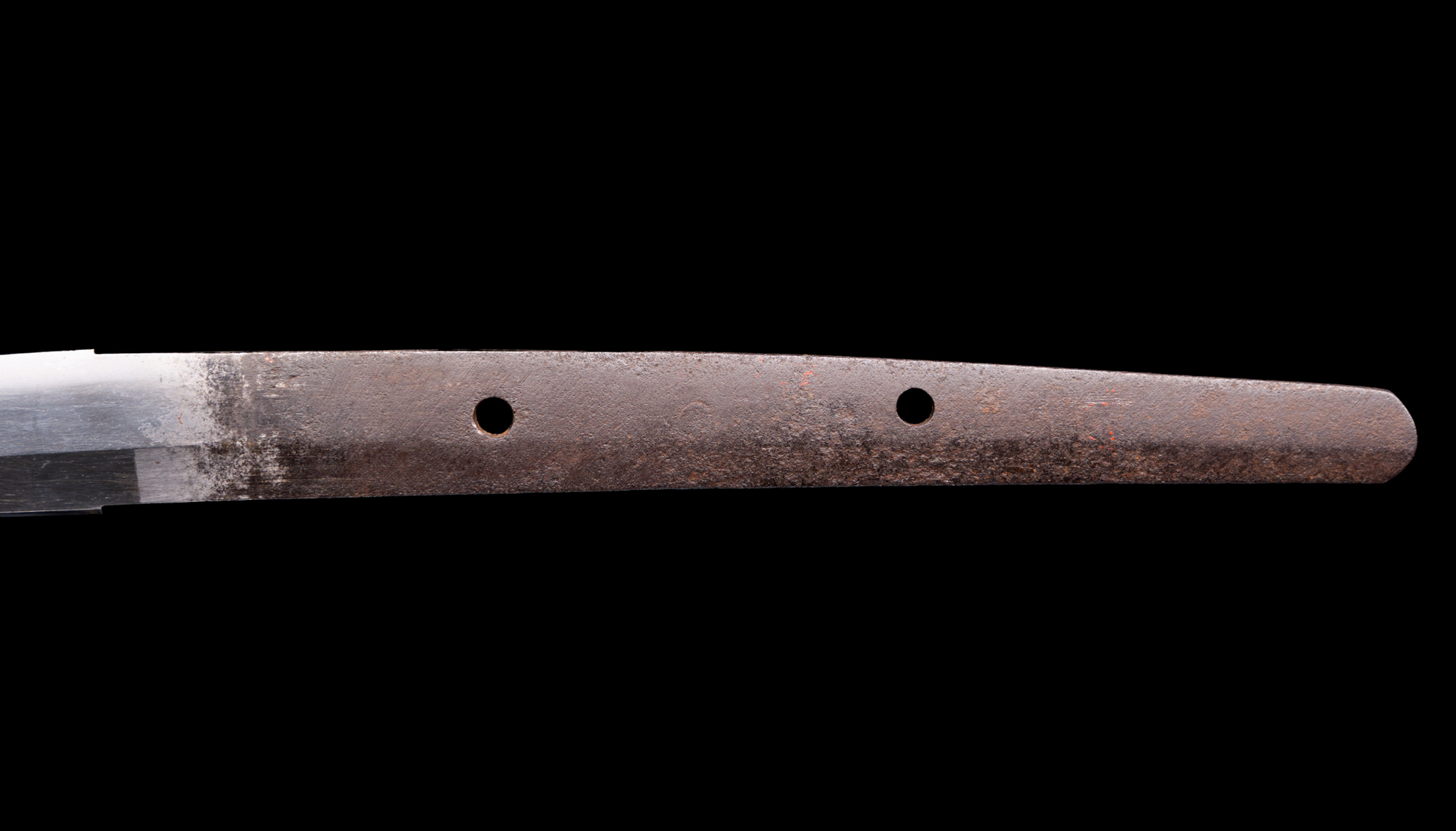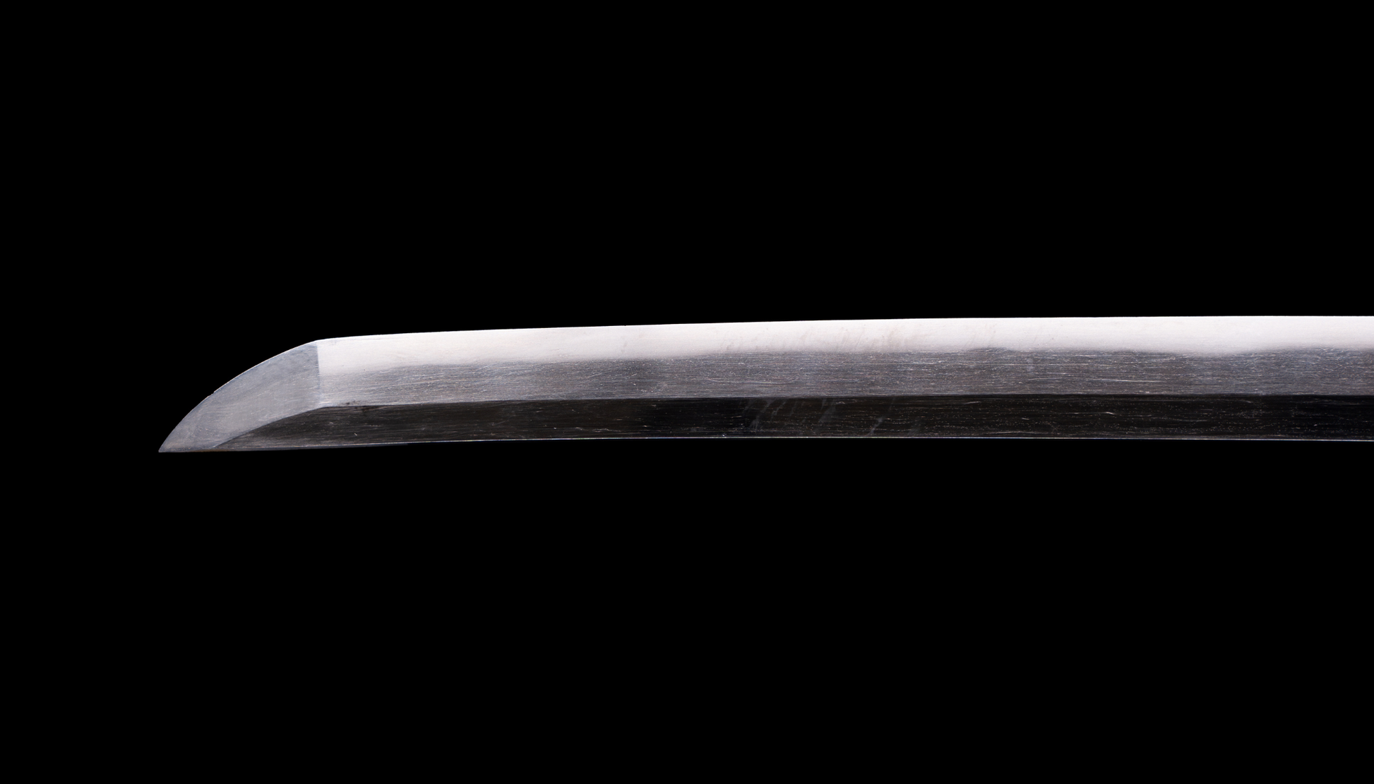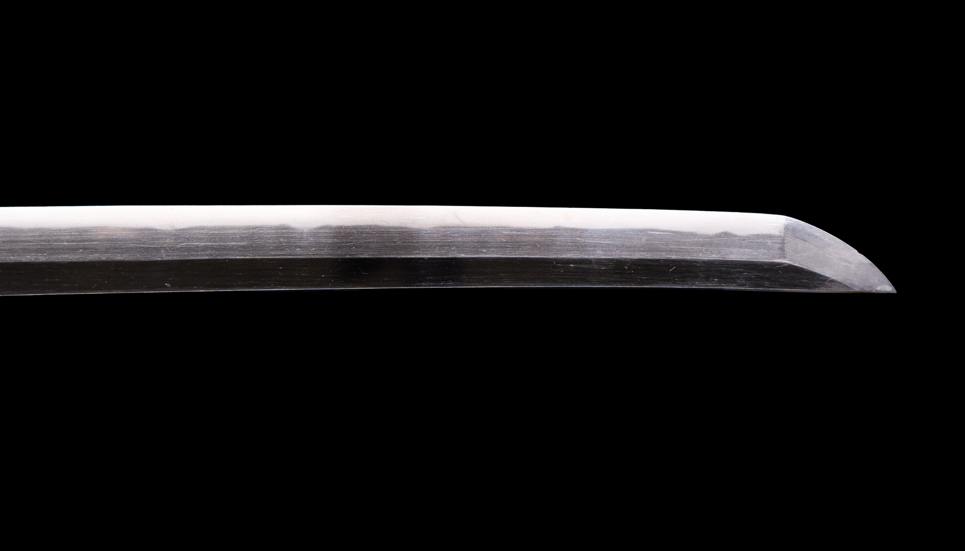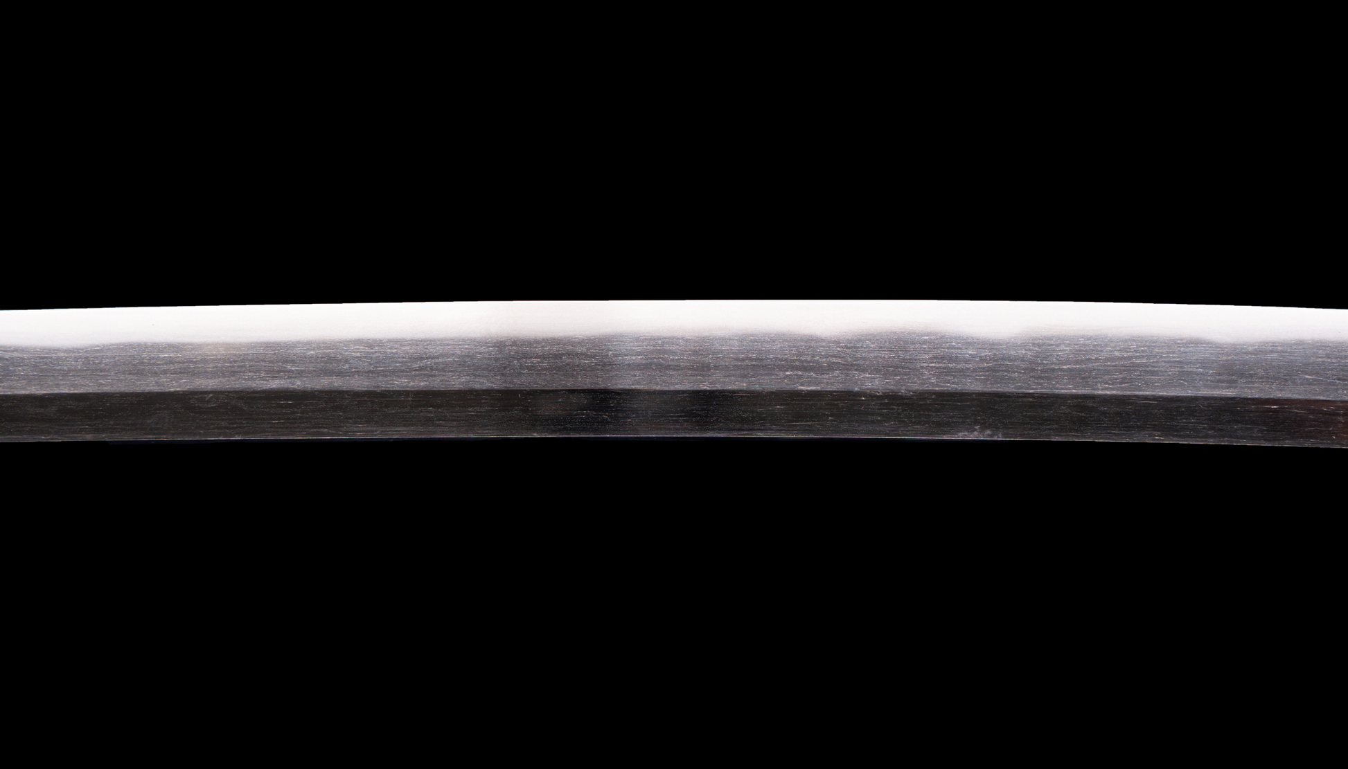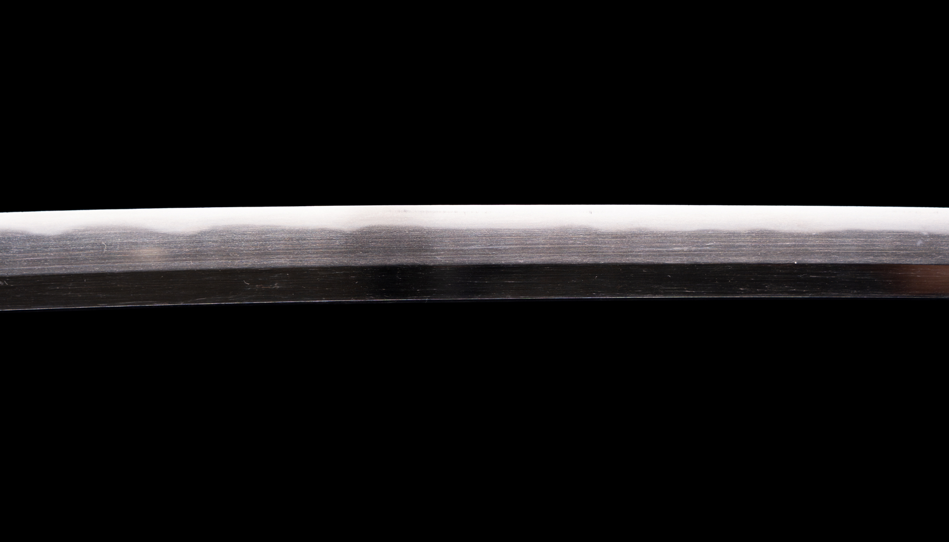 Ce katana exceptionnel, estimé comme datant de la période E do , présente un superbe savoir-faire et des détails complexes. La lame présente une courbe moyenne (Naka-sori) avec une faible profondeur, conçue dans le style Shinogi-zukuri avec un Iori-mune (dos simple).