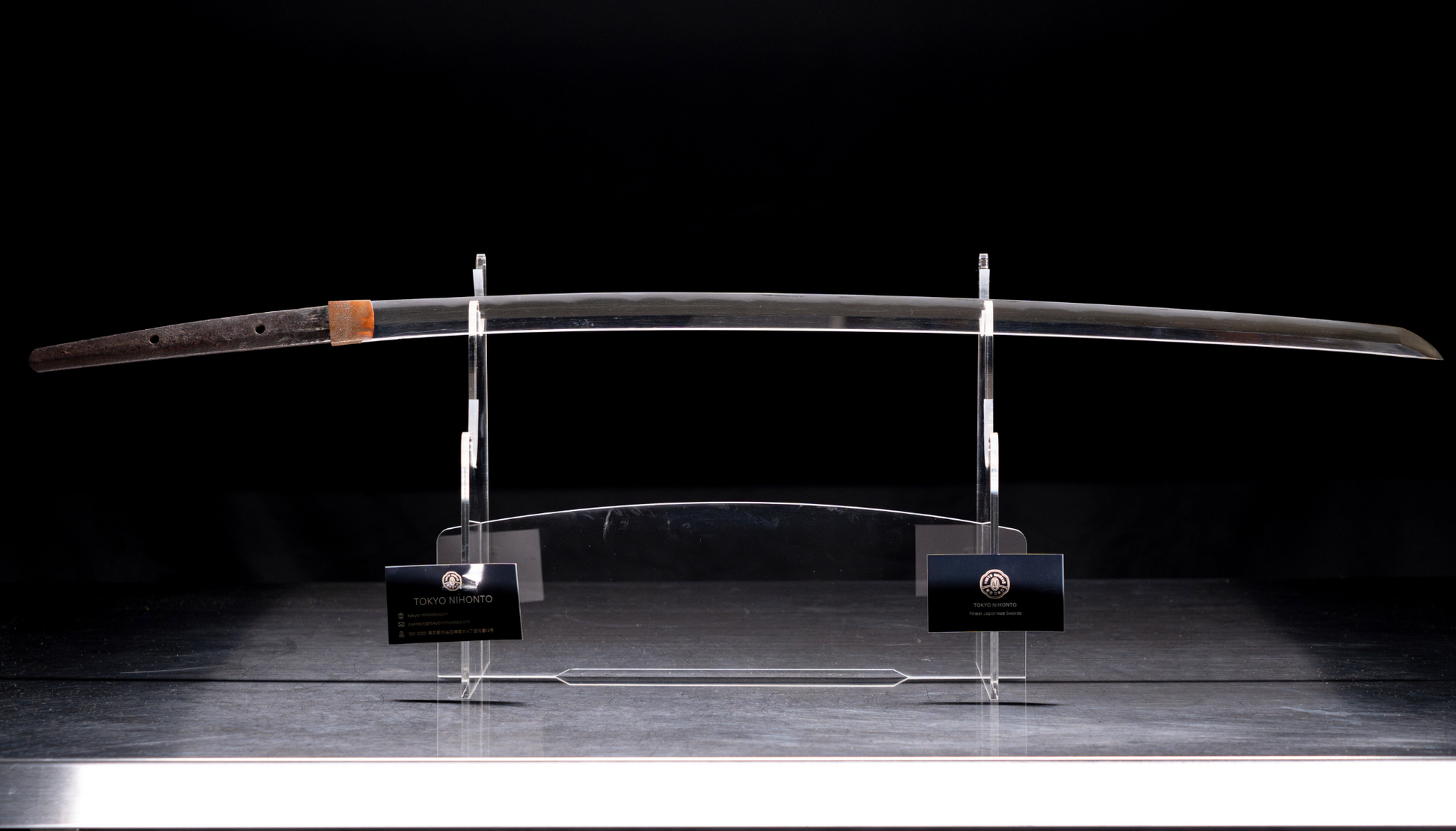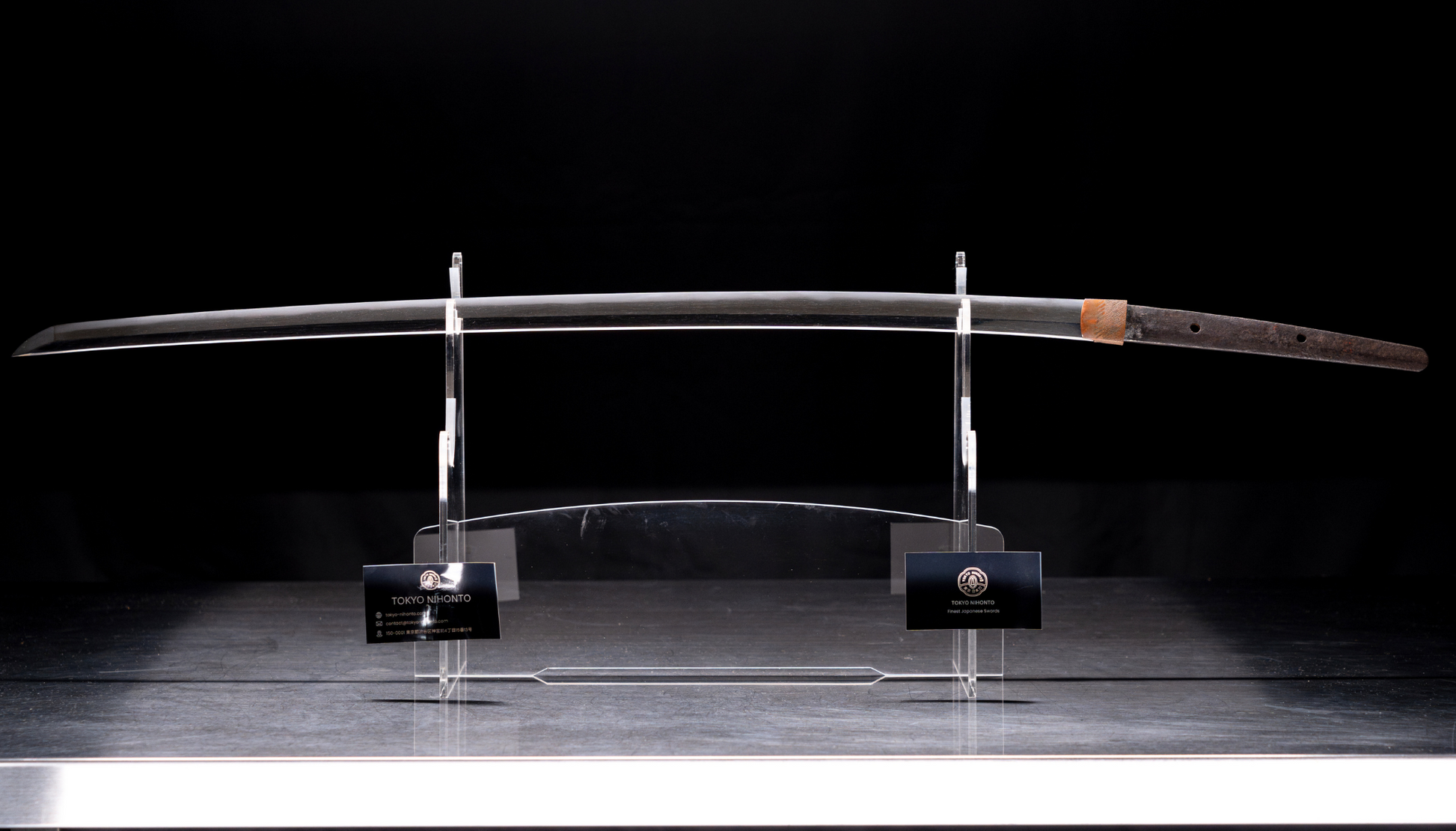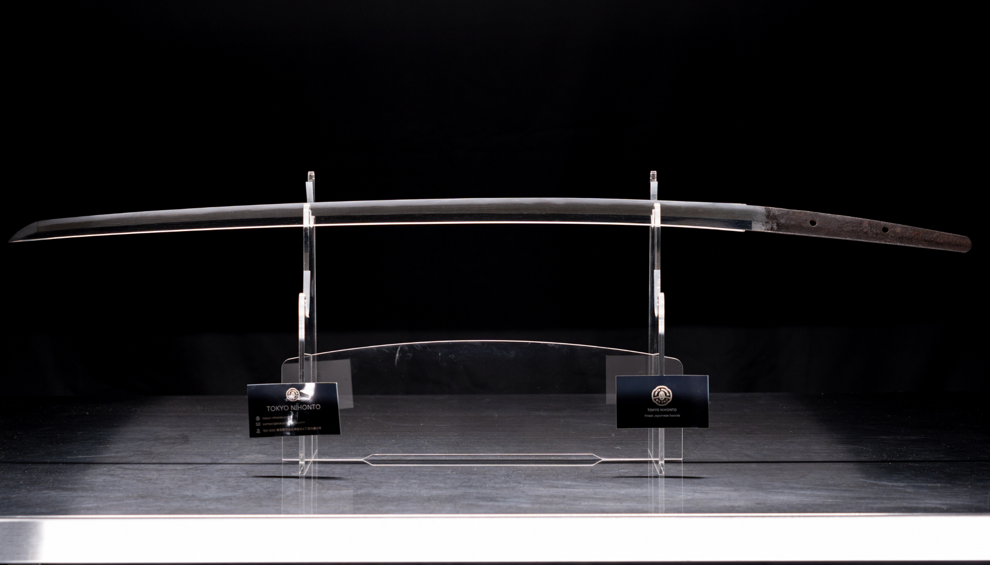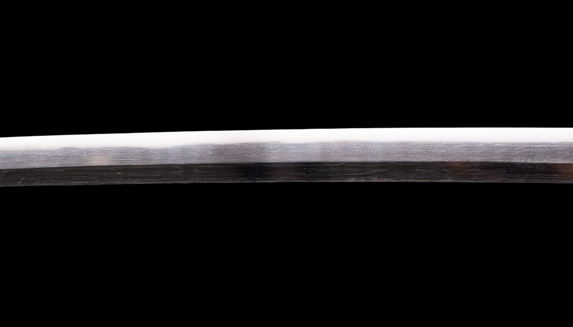 Le katana présente une courbe moyenne (Naka-sori) avec une faible profondeur, conçue dans le style Shinogi-zukuri avec un Iori-mune (dos simple). La pointe de la lame est petite (Ko-kissaki) et a une finition large (Haki-kakeru). Le Hamon est légèrement vallonné (Ko-cho) avec de petites irrégularités (Ware). Il contient de fines nie (particules martensitiques) et présente des sunagashi (lignes en forme de moustaches). Le Jigane est un ko-itame-hada mélangé à du mokume , qui se démarquent nettement.
