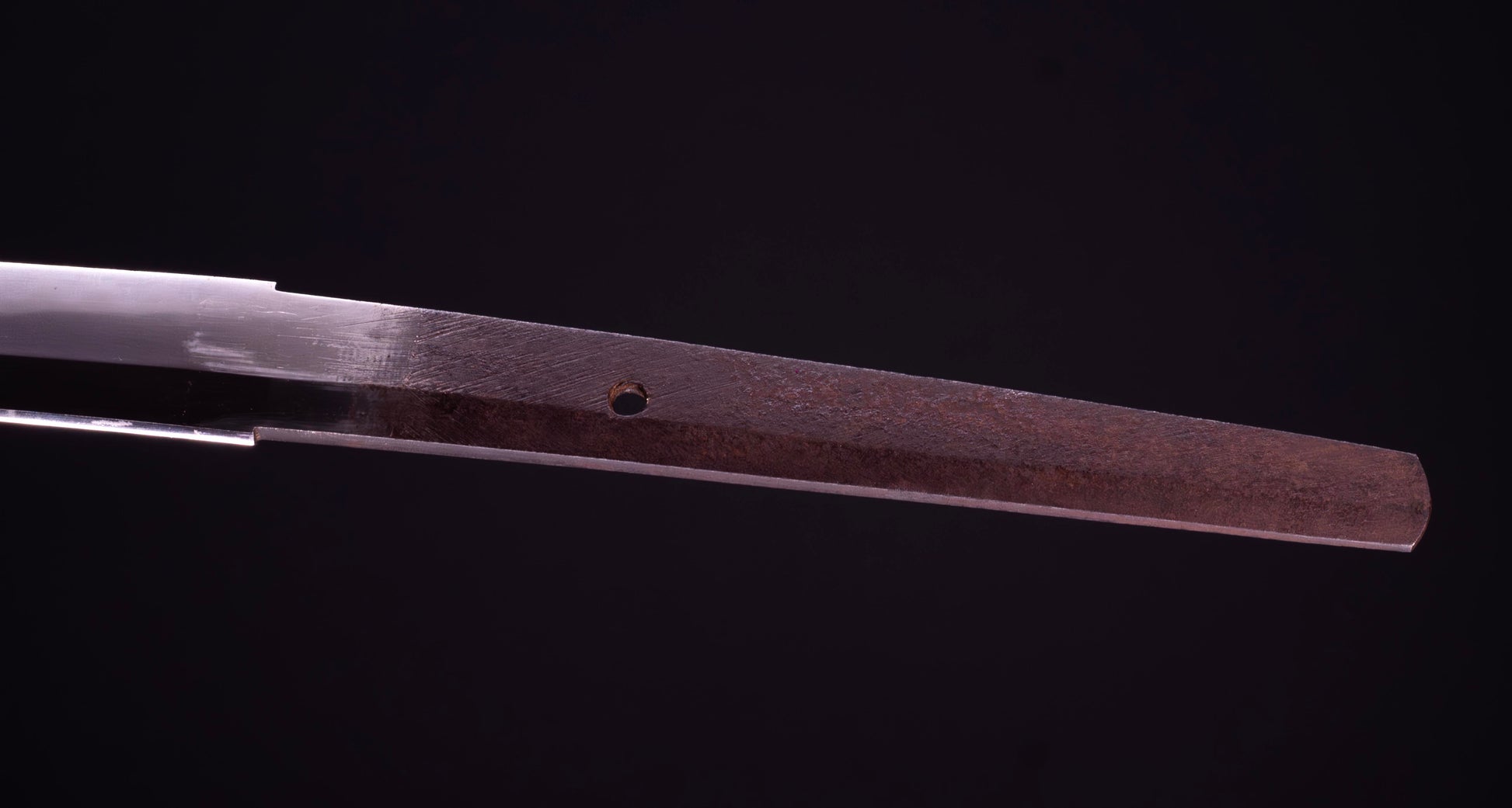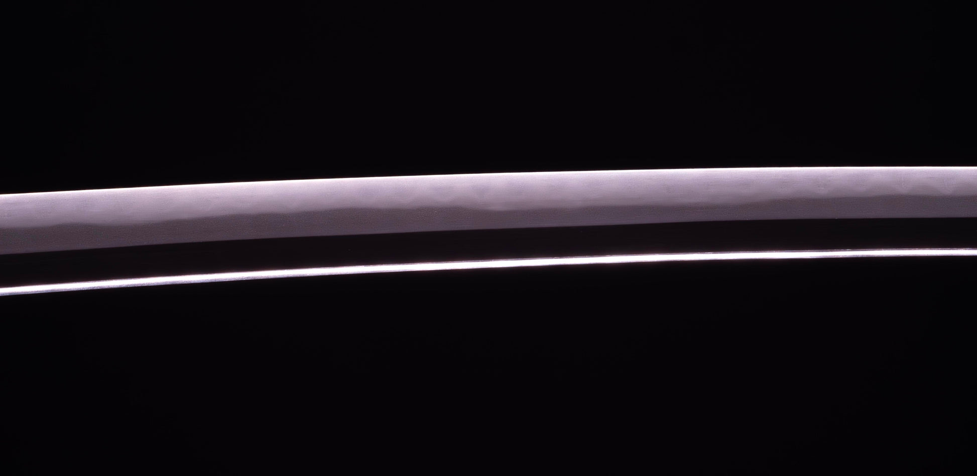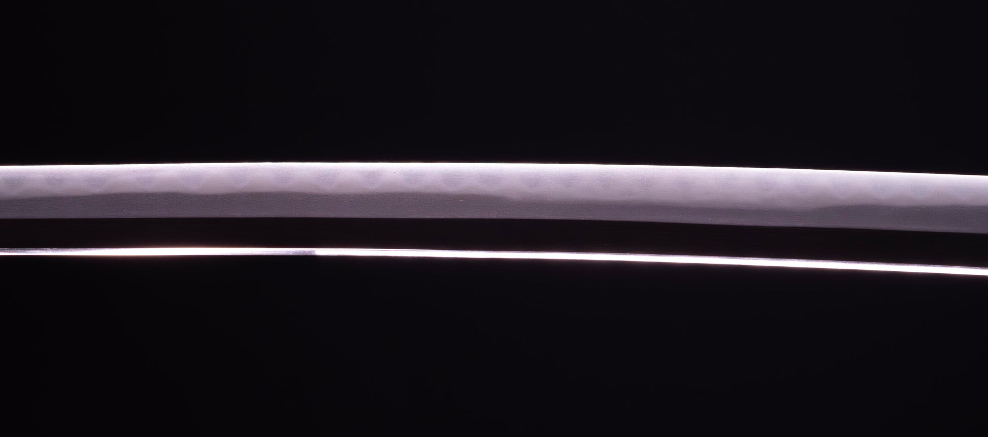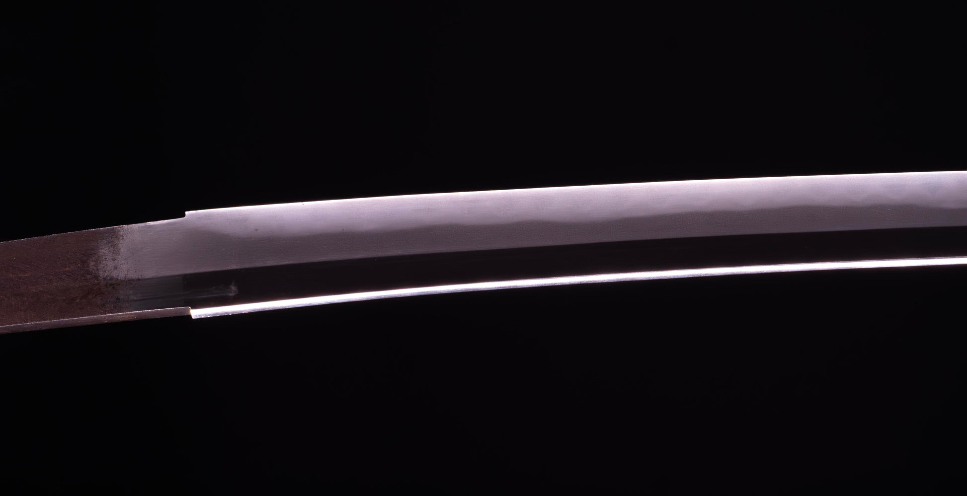 The katana exhibits a beautifully refined gunome hamon (temper line), reflecting the smith’s precise heat treatment process. The blade’s well-balanced proportions, with a moderate curvature of 1.2 cm, make it an exceptional piece both in form and function. Its steelwork features a tight and even hada, further enhancing its aesthetic appeal.