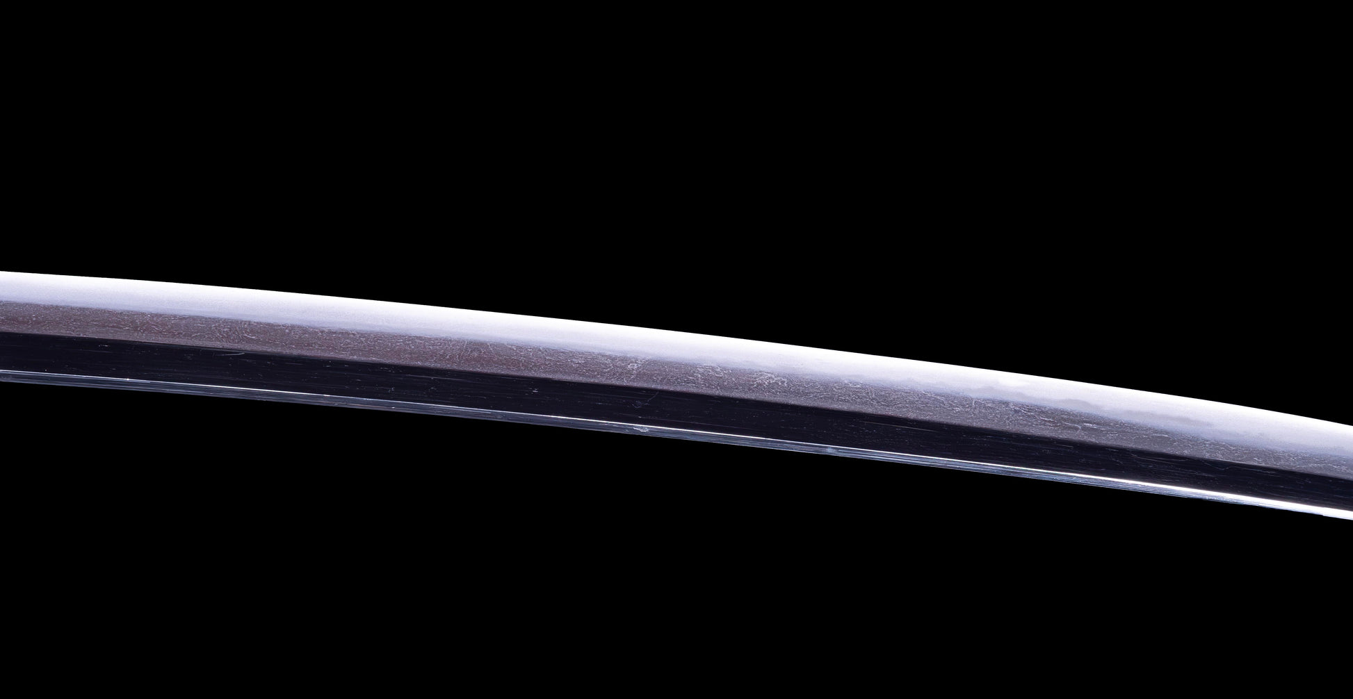 Muneyuki works are renowned for their balance between martial practicality and elegant simplicity. This blade exemplifies the school’s hallmark style — a refined suguha-to-notare hamon glowing with fine nioi, and a beautifully forged ko-itame hada that reveals tight, subtle grain under light. The shinogi-zukuri shape and moderate tori-zori curvature provide ideal cutting balance, while the chū-kissaki lends a commanding yet graceful presence.